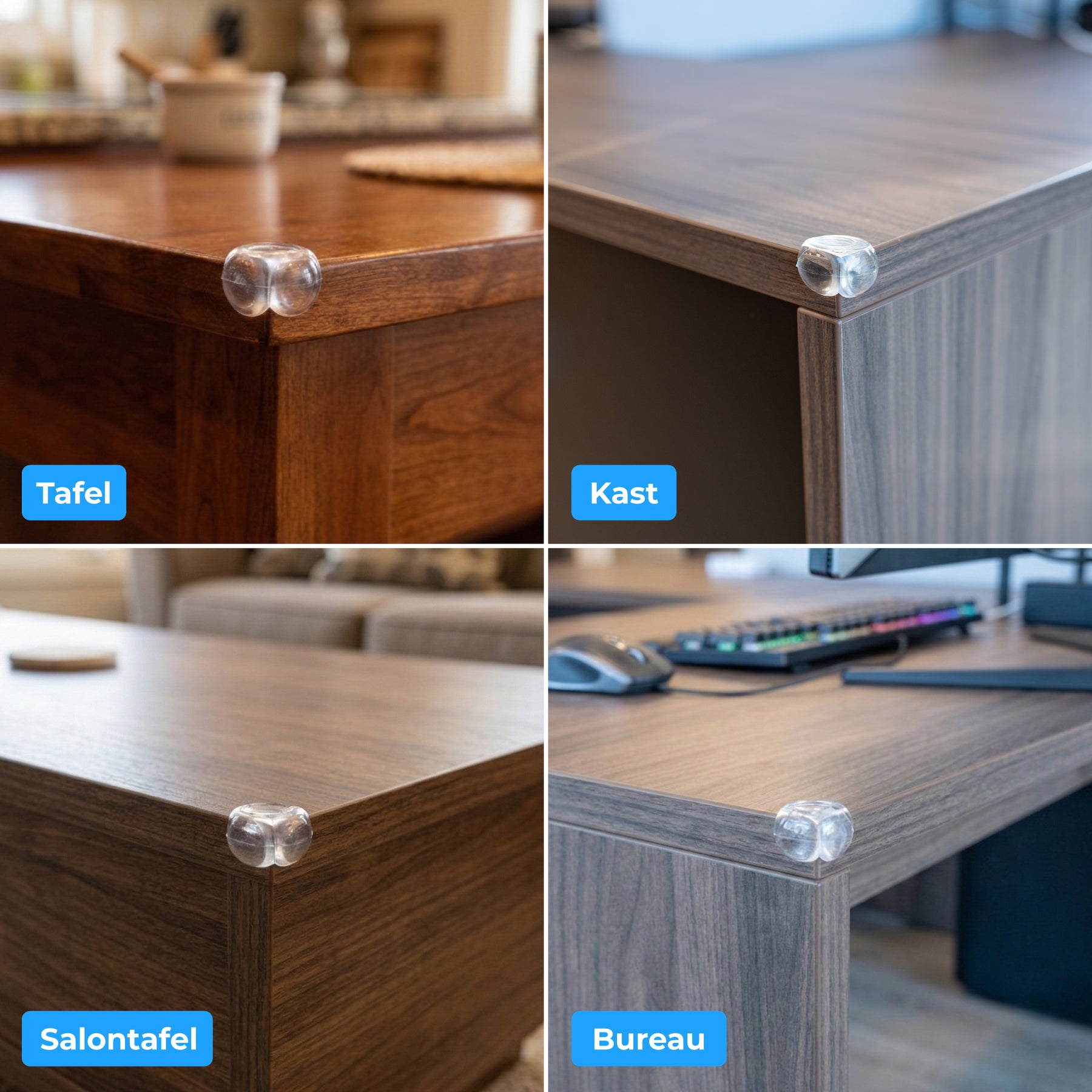 Bescherm je kinderen tegen scherpe tafelhoeken met de transparante Nuvance hoekbeschermers.